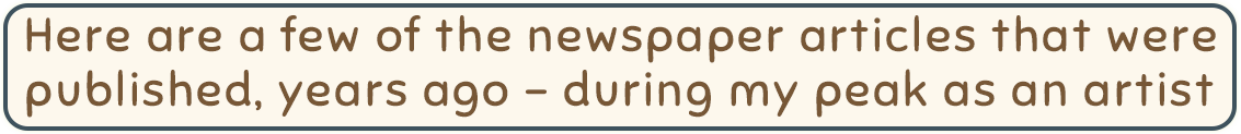 Here are some of the newspaper articles that were published, years ago - during my peak as an artist.
