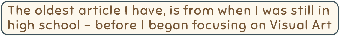 The oldest article I have, is from when I was in high school - before I began focusing on Visual Art.