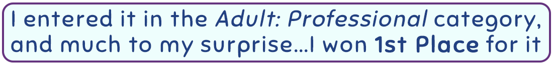 I entered it into the Adult: Professional category and much to my surprise, I received 1st Place for it.